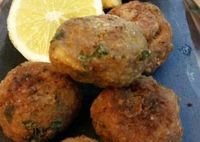 - Mit einem Esslöffel Portionen abstechen, zu Bällchen rollen und flachdrücken. In Mehl wälzen. Überschüssiges Mehl abschütteln. Das Öl in einer Pfanne erhitzen. Die Bällchen nach und nach bei mittlerer Hitze ca. 3 Minuten auf jeder Seite goldbraun braten. Wenn Sie durchgebraten sind, mit einer Zange oder einem Schaumlöffel vorsichtig aus der Pfanne heben, auf Küchenpapier abtropfen lassen..