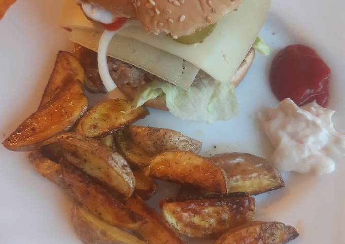 Cheeseburger mit Potatoe Wedges Richtlinien