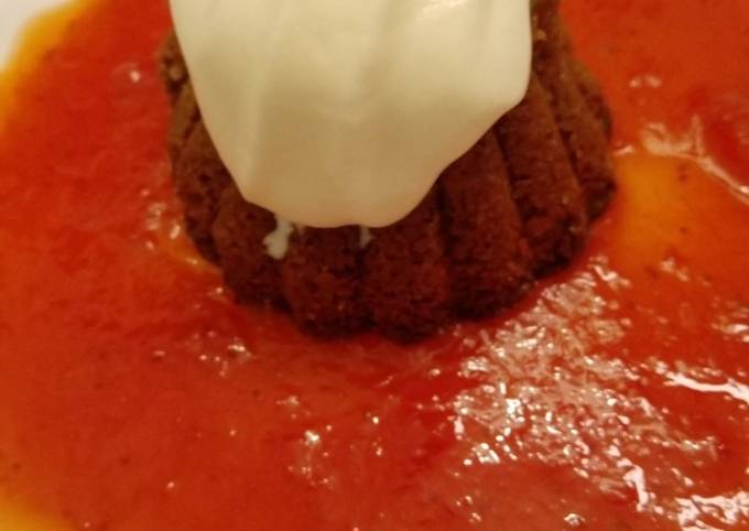 Rezept: Sehr Fein Schokoküchlein mit Erdbeermus und Sahnehäubchen - Außergewöhnlich!