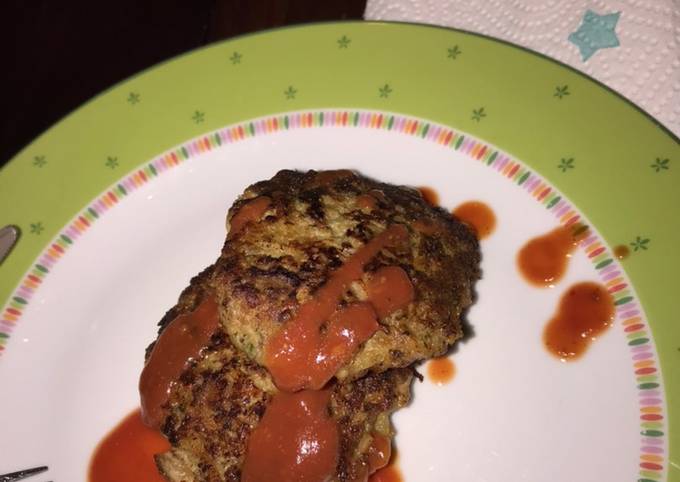 - Alles gut zusammen mischen, kleine Bälle machen und in einer heißen Pfanne ohne Deckel gut anbraten. Nach dem sie sie umdrehen, Deckel drauf tun. Guten Appetit..